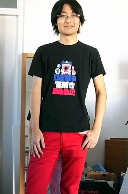 不人気過ぎて売れ残っていたボンビーTシャツを着ていましたが